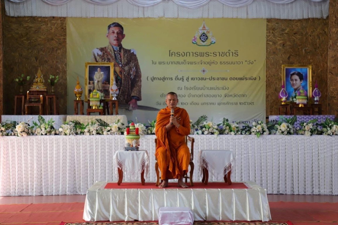 วันนี้ (20 ม.ค. 69) เวลา 09.30 น. ที่โรงเรียนบ้านแม่ระเมิง ตำบลแม่สอง อำเภอท่าสองยาง นายชูศักดิ์ รู้ยิ่ง ผู้ว่าราชการจังหวัดตาก มอบหมายให้ นายปรีดา ฟุ้งตระกูลชัย นายอำเภอท่าสองยาง เป็นประธานในกิจกรรมส่งเสริมพระพุทธศาสนา ส่งเสริมคุณธรรมจริยธรรมในหัวข้อ ปูทางสู่การตื่นรู้ สู่เยาวชน ประชาชนดอยแม่ระมาด โดยมีคณะผู้บริหาร ครู นักเรียน โรงเรียนบ้านแม่ระเมิง หน่วยงานที่เกี่ยวข้อง และประชาชนชาวตำบลแม่สอง อำเภอท่าสองยาง เข้าร่วมกิจกรรม